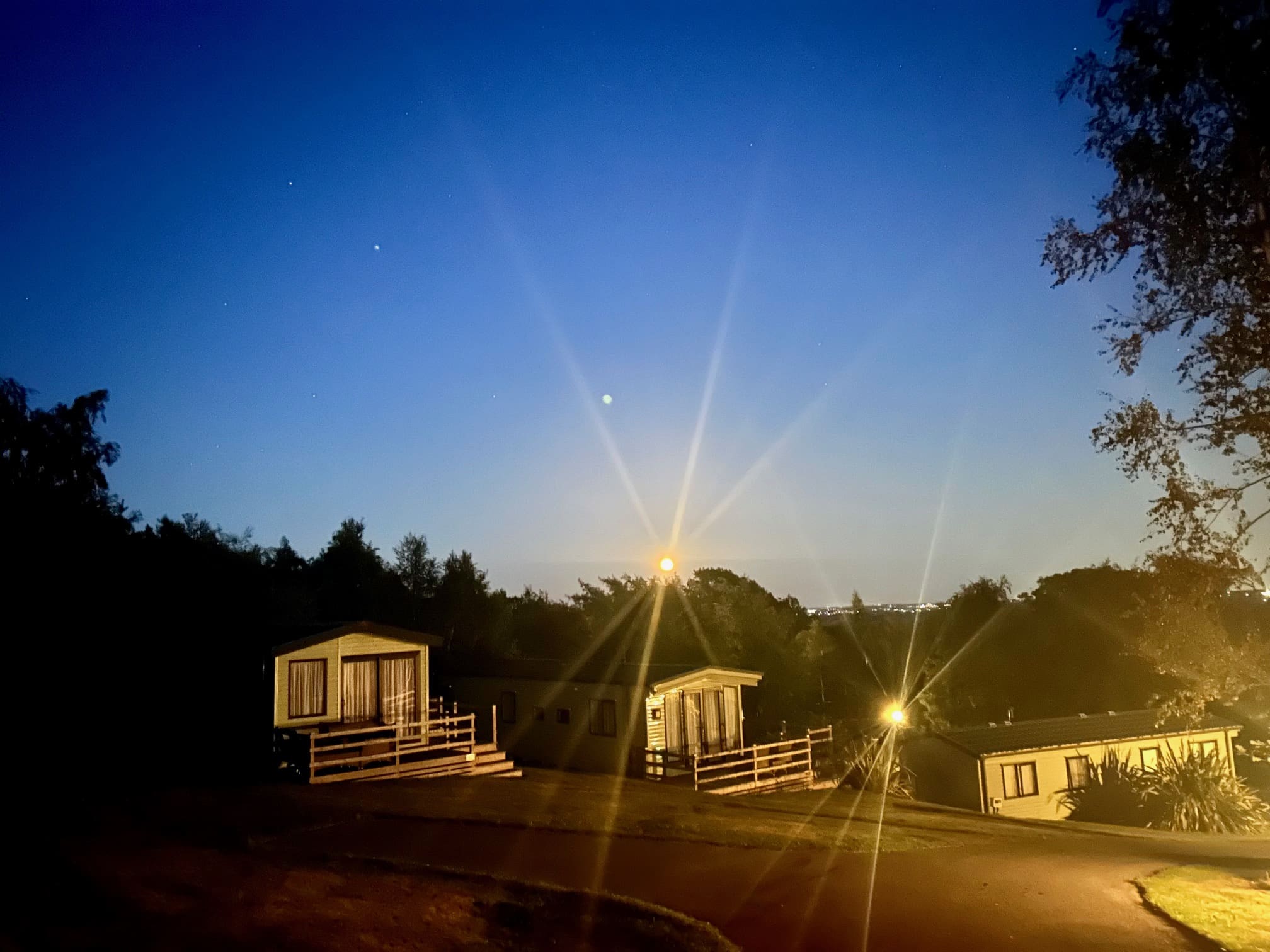 Along with the golden sun, we were treated to a golden full moon last week. The photograph does not do it justice, but does show it to be as bright as our gas lamp!
