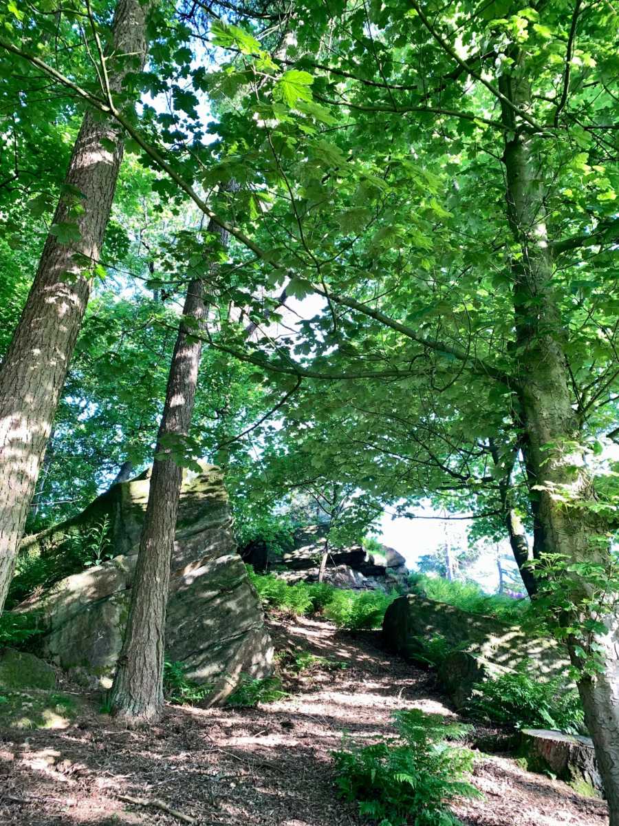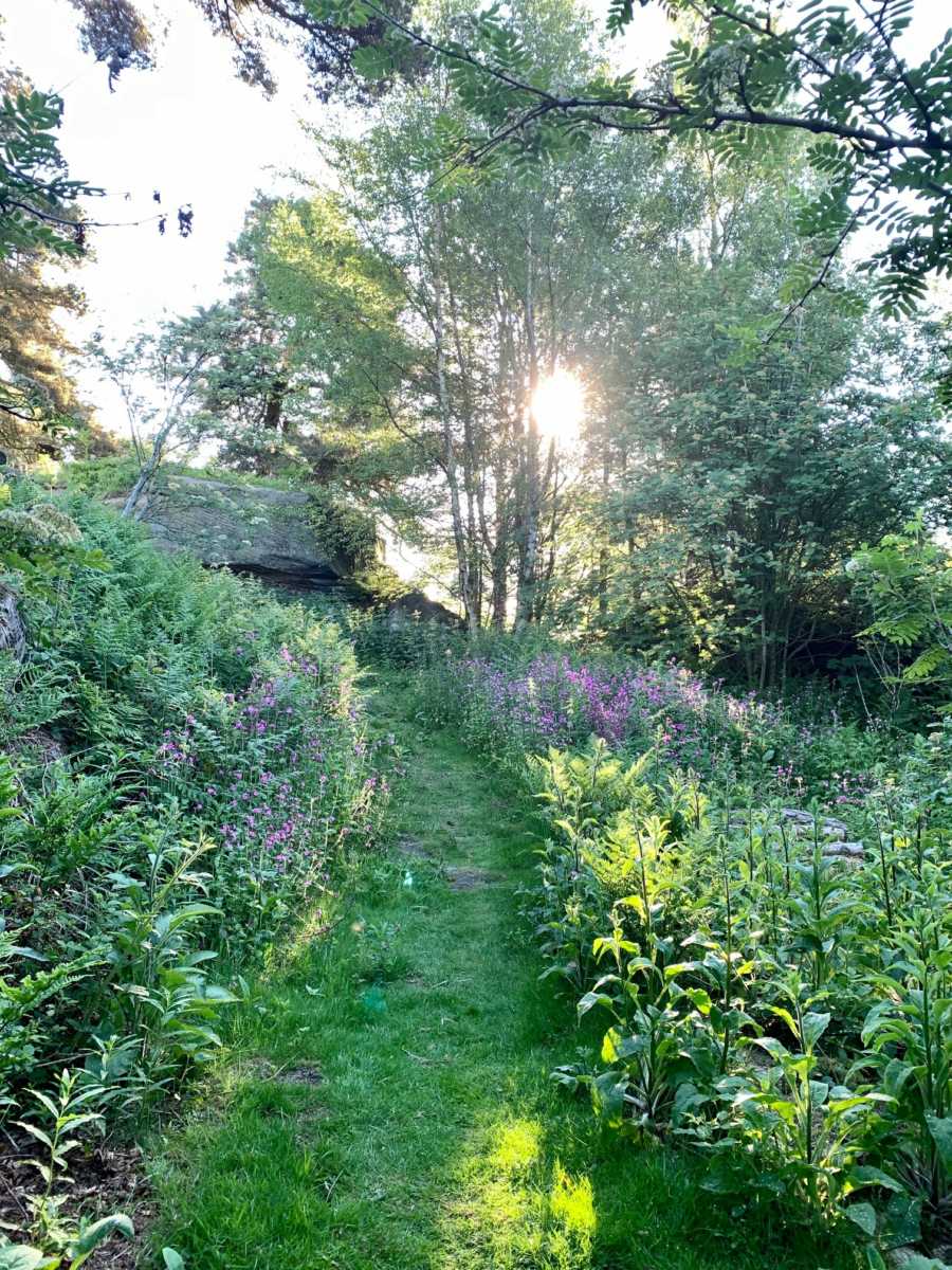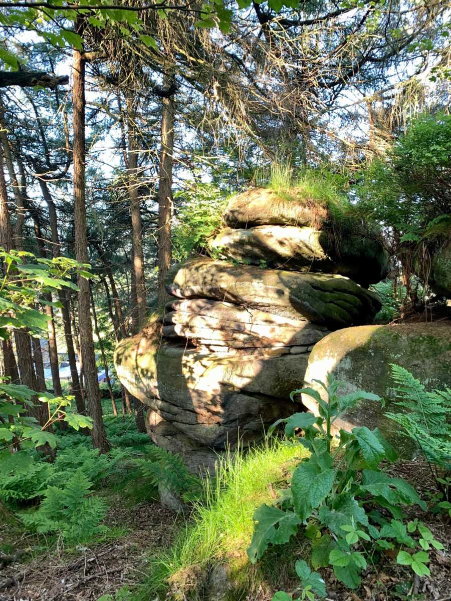 If it’s a cool stroll you are looking for then take a walk into our woodlands. The light diffuses through the canopy of trees offering a dappling of light upon the forest floor. Pathways are lined with logs of felled trees in line with our woodland management scheme and large imposing rocks (an overspill from Brimham) are stunning features of all of our woods.