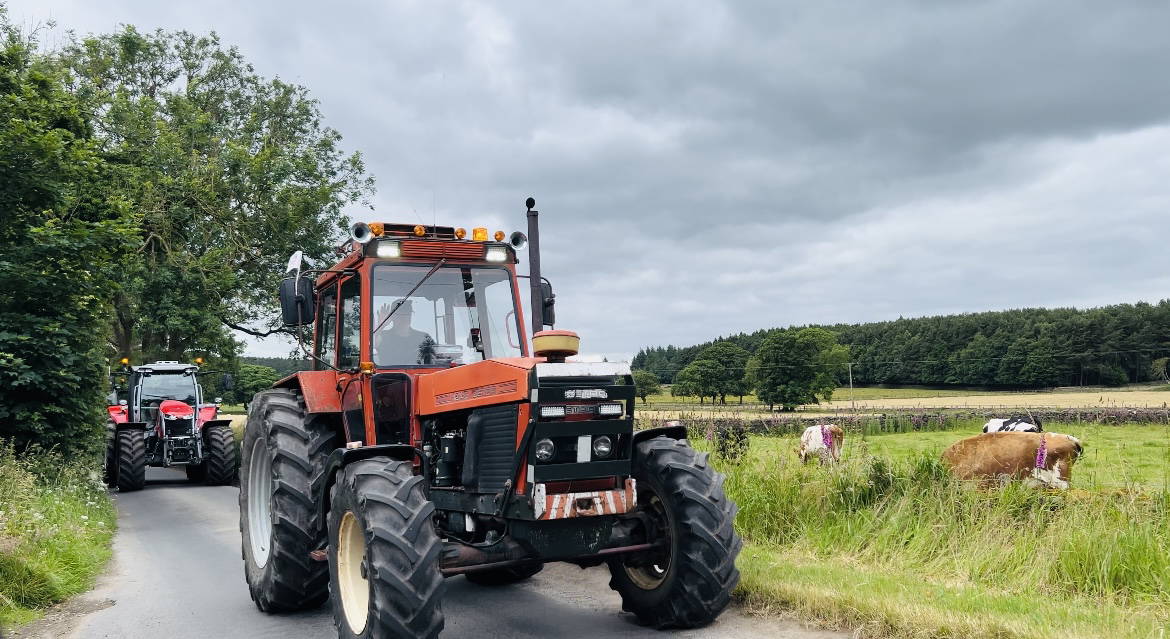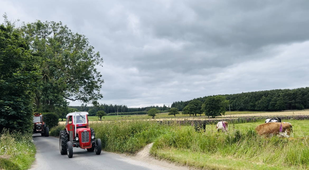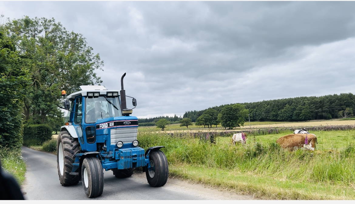 - Vintage blue Ford tractor country road rural Yorkshire