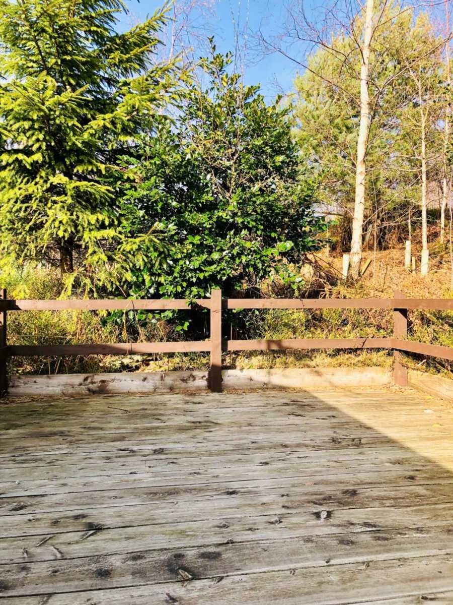 The bespoke timber decking to the side elevation and the decked area to the rear of the caravan make the most of this very private, woodland pitch.