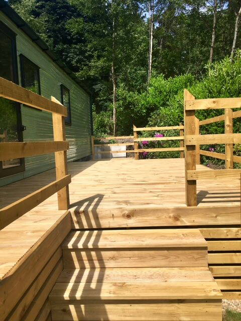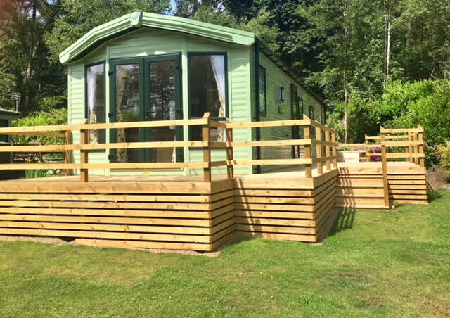 The large front and side decked areas to this superb van ensure lots of sun throughout the day. In a lovely Woodland Setting, a short stroll from one of the beautiful ponds on the park and with a private parking bay.