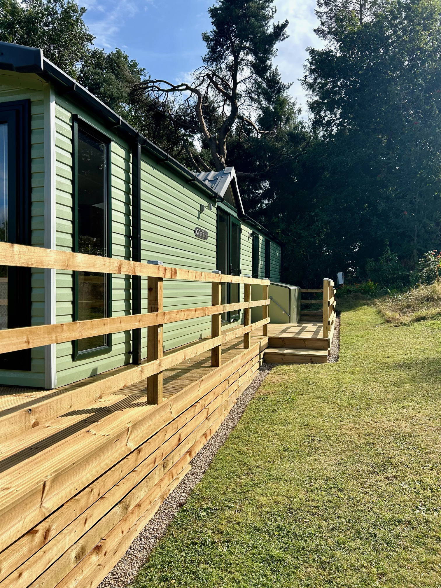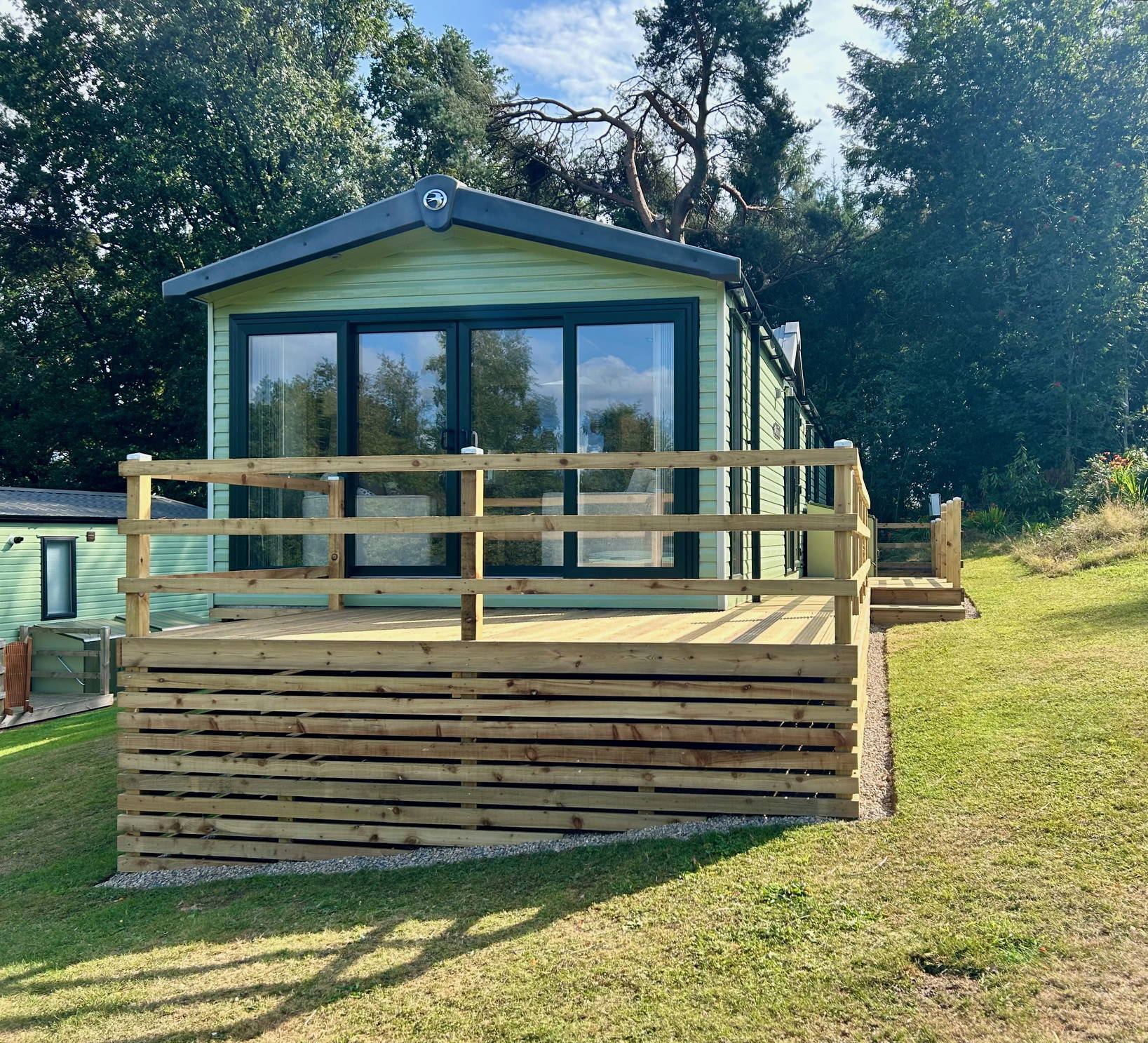 Beautifully open plan with all home comforts, the Chamonix really is a home from home. Situated on an elevated pitch with views towards the putting green and library and with easy access to our woodland walks.