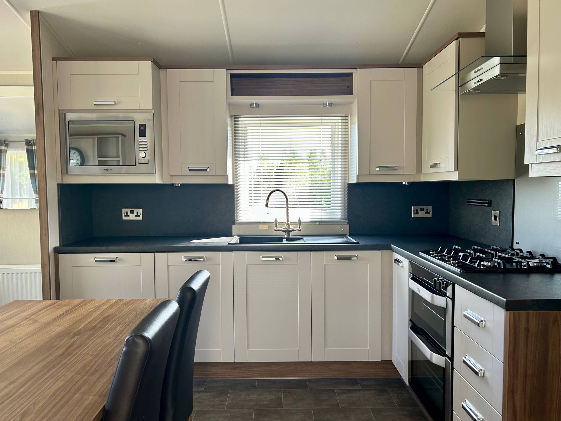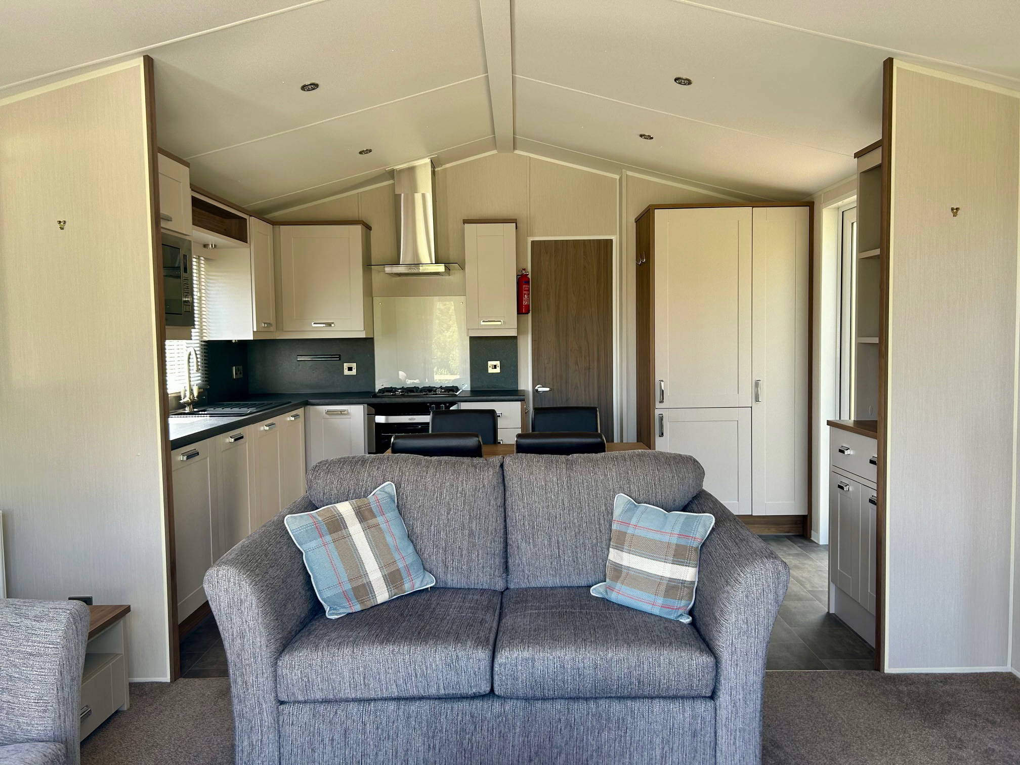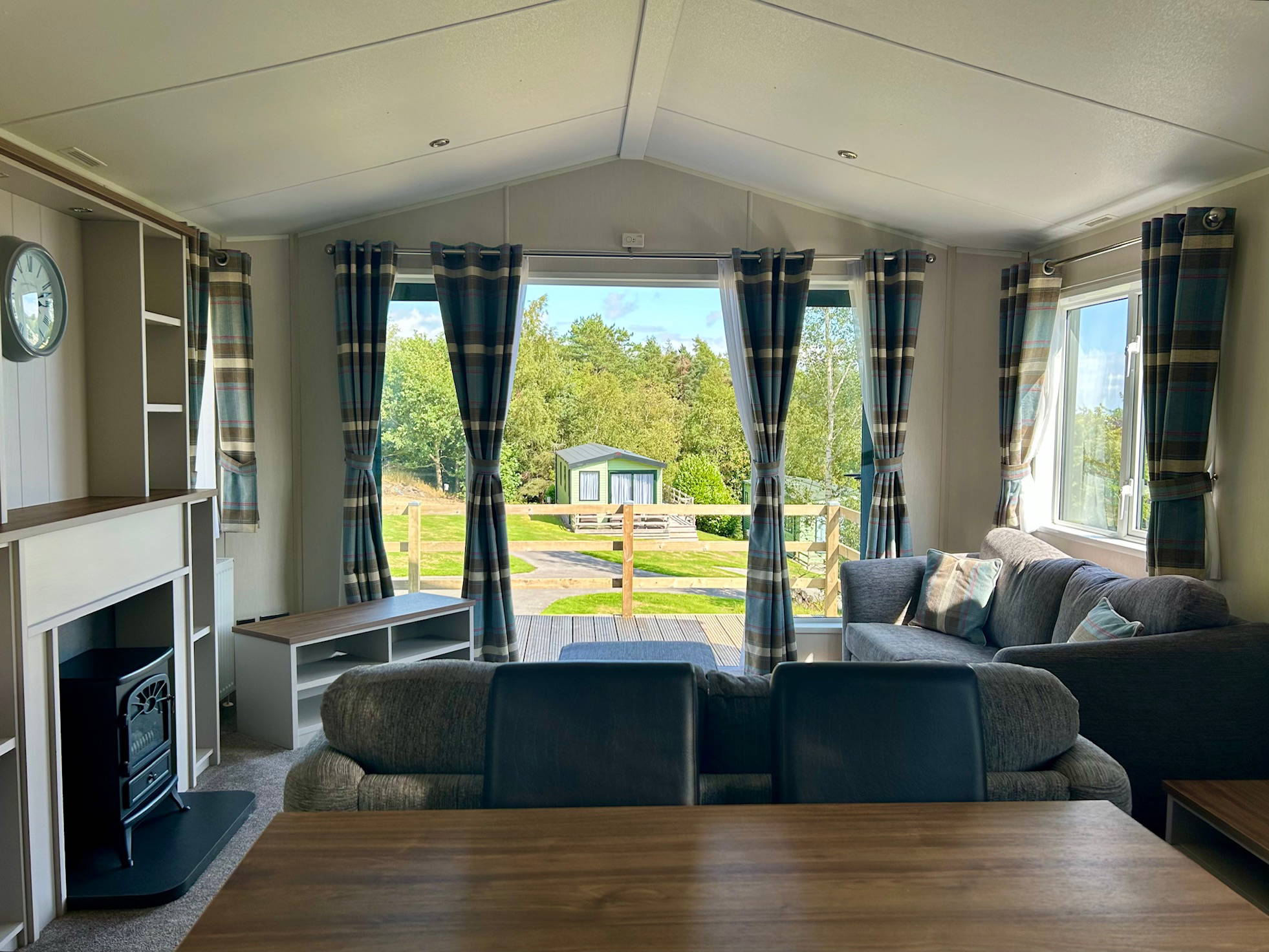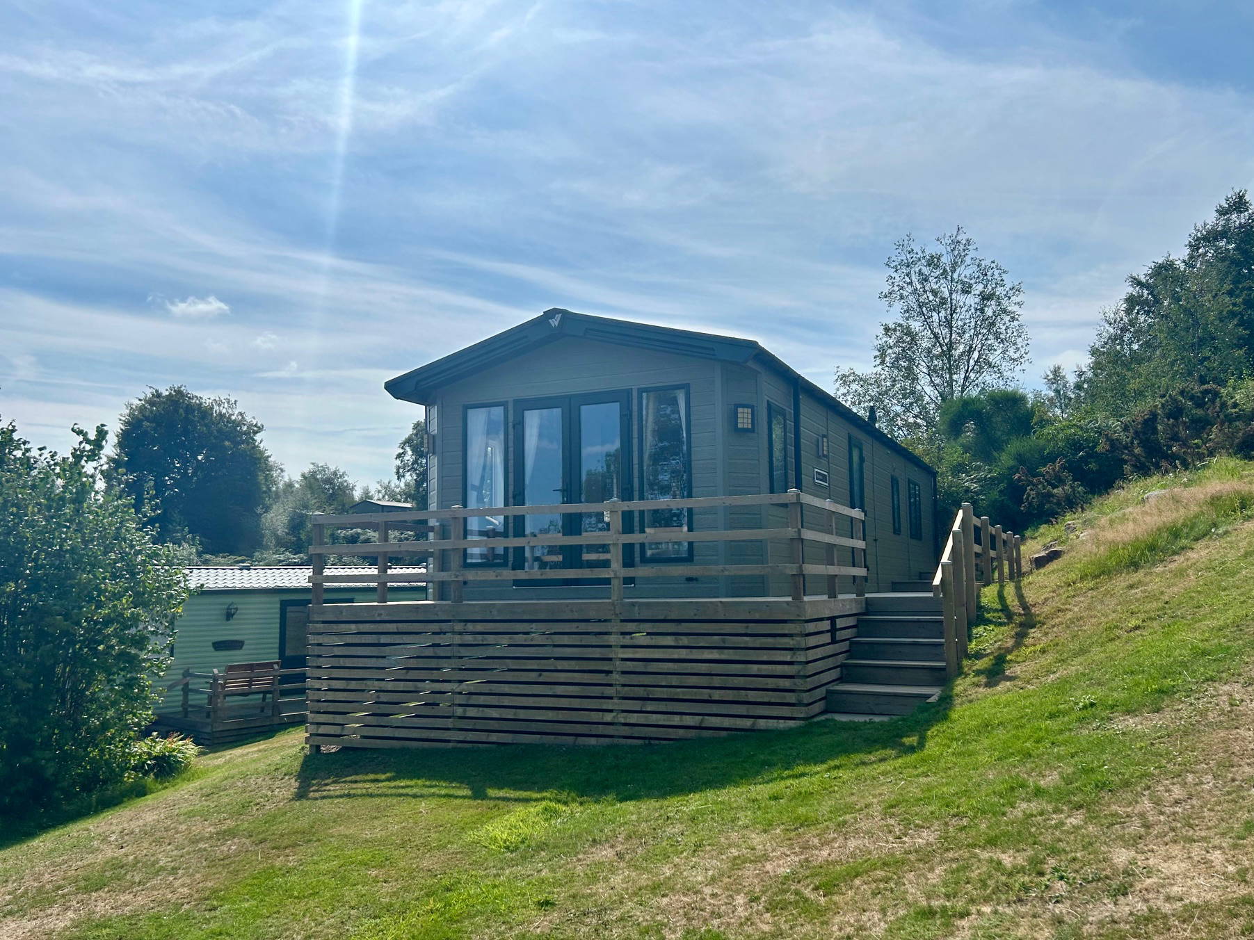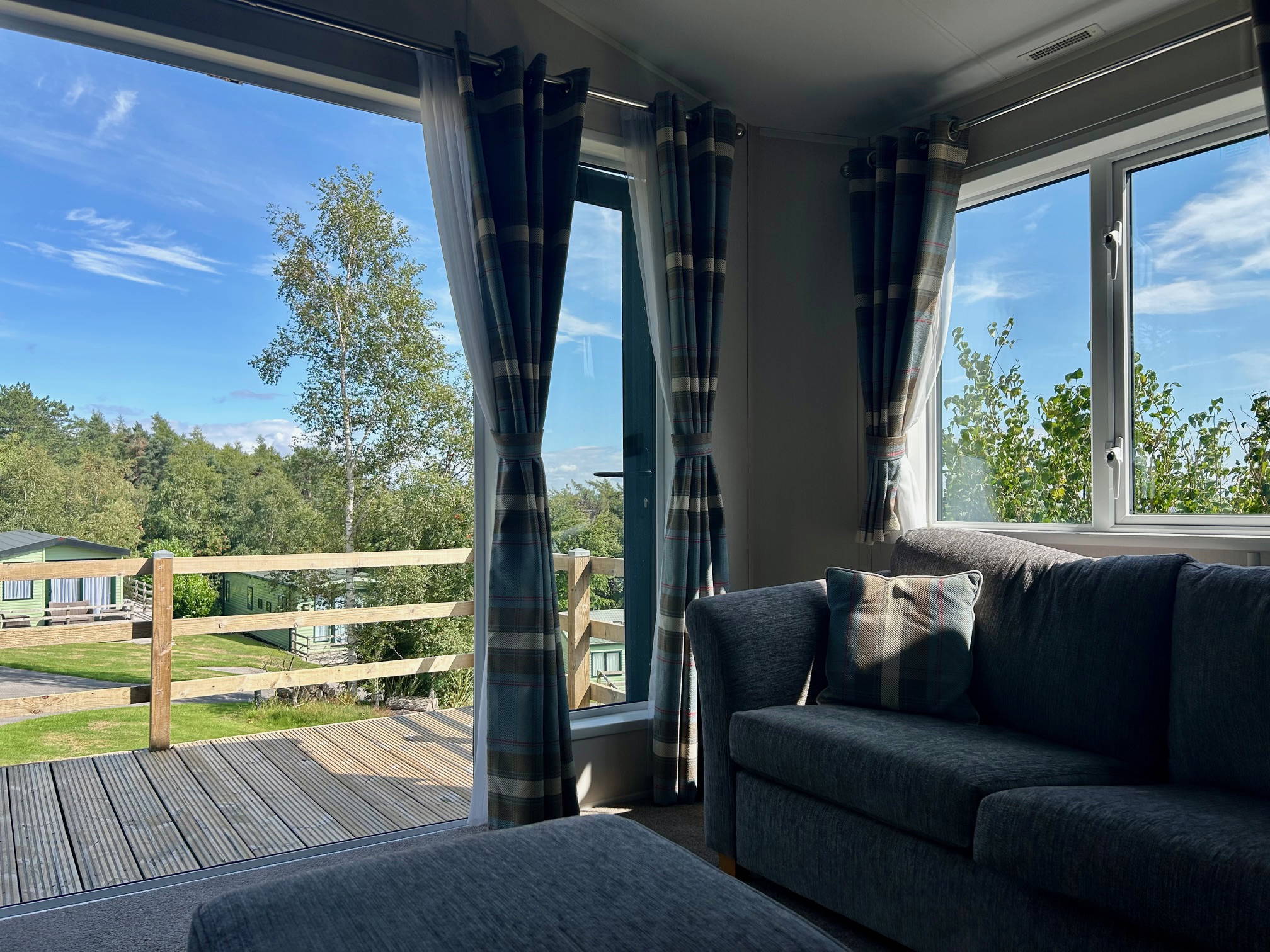 The Sheraton is a luxurious holiday lodge, providing a comfortable home from home with an indulgent touch of luxury. The large, bespoke timber decking wraps around the front and side elevation of this grand holiday home to offer al fresco opportunities all day long. Sited on one of the highest points of the park, the distant views are unrivalled. With spectacular access to watch the sun rise from outside the patio doors and an extra deck to capture the evening sun, this truly is a unique position.